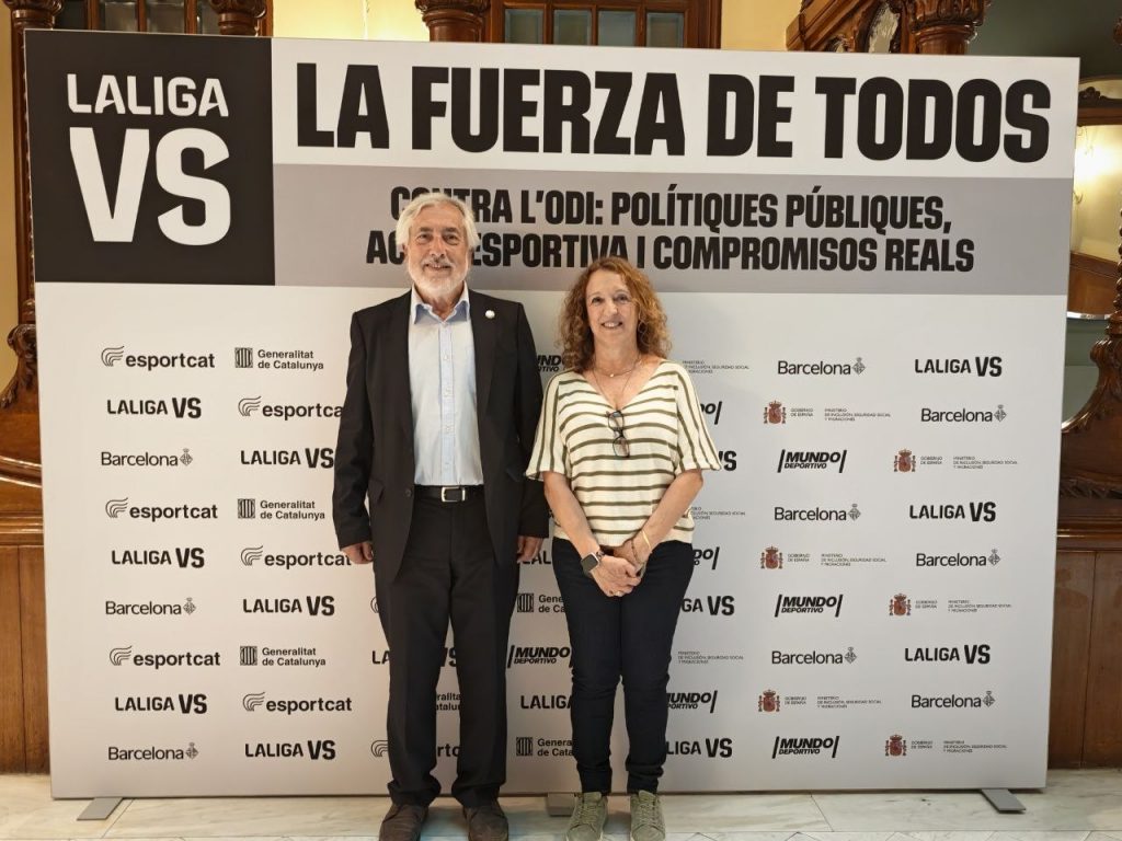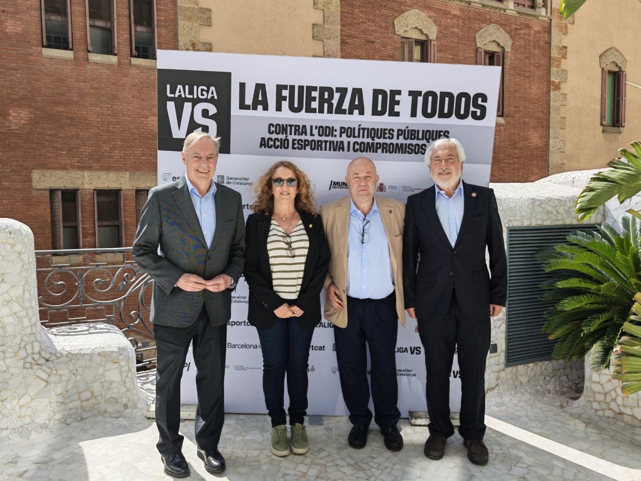 El pasado jueves, LaLiga y la Generalitat de Catalunya organizaron en Barcelona una jornada contra el odio en los estadios del fútbol español, bajo el título “Frente al odio: políticas públicas, acción deportiva y compromisos reales”. El acto contó con una importante presencia institucional, dentro de la cual destacó una destacada representación de Aficiones Unidas encabezada por su presidente, José Hidalgo. También estuvieron presentes Antoni Guil, vicepresidente de Aficiones Unidas y presidente de la Confederació Mundial de Penyes del FC Barcelona; Joan Camps, secretario de Aficiones Unidas; Sílvia Rodríguez de la Gándara, presidenta de la Federació Catalana de Penyes del RCD Espanyol; y Cristóbal Sánchez, vicepresidente de la Federació de Penyes del Girona FC.
